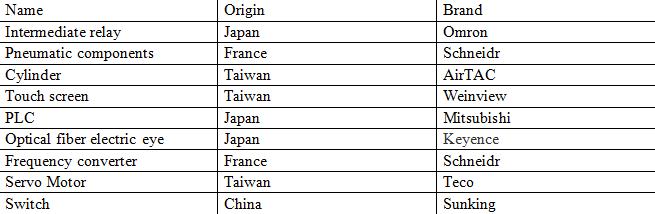 2) वायवीय भागों, विद्युत भागों और ऑपरेशन भागों में उन्नत विश्व प्रसिद्ध ब्रांड घटकों को अपनाना।