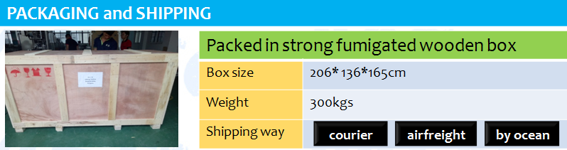 | सेवा के बाद | विक्रेता मशीन को तैयार करने, समायोजित करने और उपयोग करने के बारे में साधन और वीडियो प्रदान करता है जैसे ही मशीन तैयार होती है। जब उपयोगकर्ता समस्या का उपयोग करता है तो विक्रेता समय पर सेवा प्रदान करता है। विक्रेता एक इंजीनियर को स्थापना और कमीशन और प्रशिक्षण के लिए खरीदार के कारखाने में भेज सकता है, खरीदार को कमरे और बोर्ड और गो-बैक एयर टिकट और वीजा शुल्क के लिए जिम्मेदार होना चाहिए |